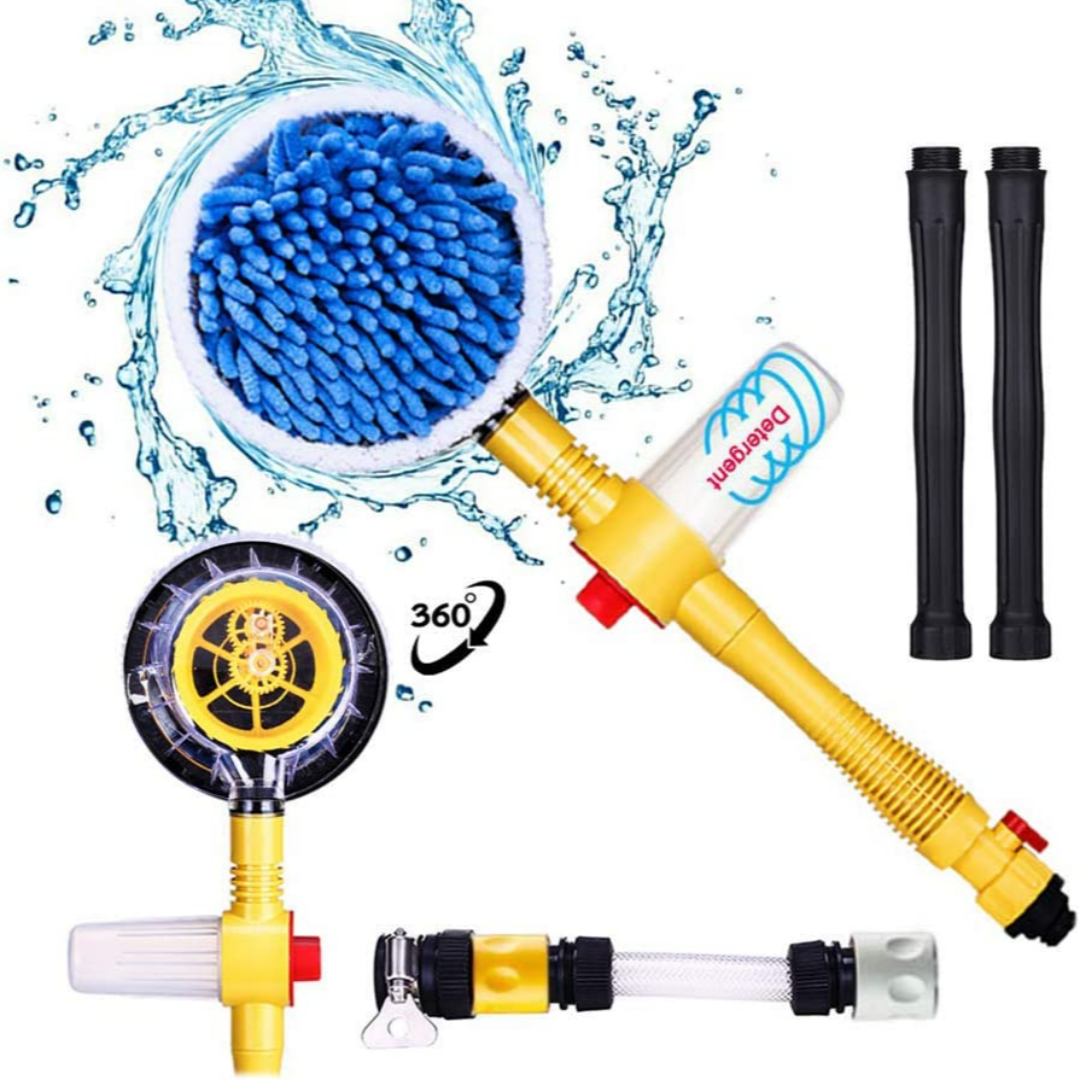 1. 360 degree automatic rotating brush head: connect the garden water pipe and turn on the faucet. Without additional electricity, the brush head can automatically rotate 360° with high water pressure, and there are three gears to adjust the hydraulic power.